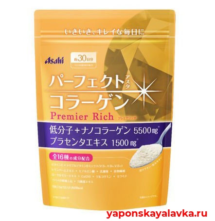 Коллаген Асахи Премьер Рич – премиальная версия, в состав которого входят 16 активных компонентов, предназначенных для омоложения суставов и кожи.