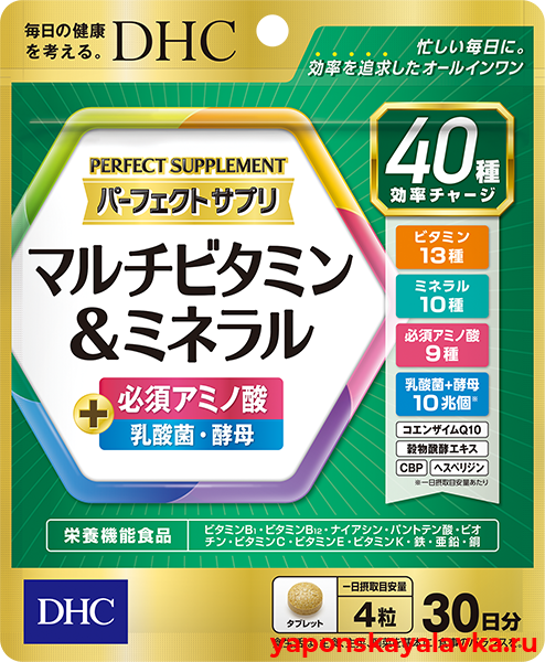 Мультивитамины+ минералы + аминокислоты + молочнокислые бактерии Perfect Supplement Multivitamin & Mineral DHC на 30 дней
