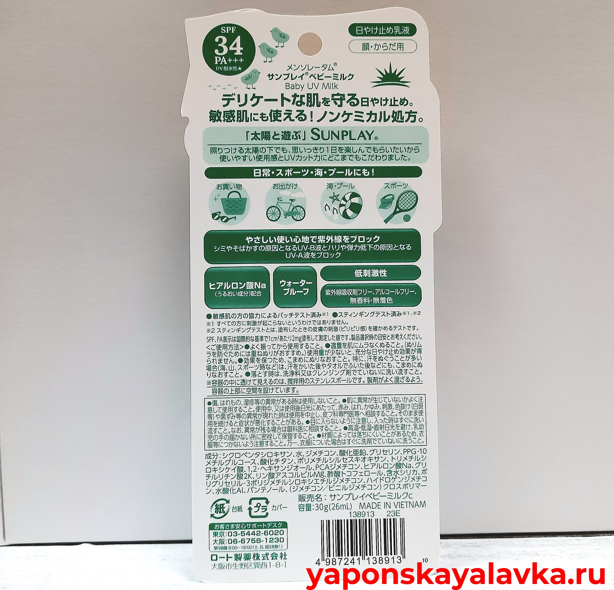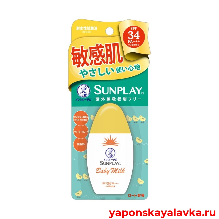 Солнцезащитное молочко Baby Milk Sunplay Rohto - деликатное солнцезащитное средство для защиты самой нежной детской кожи или чувствительной кожи взрослых.