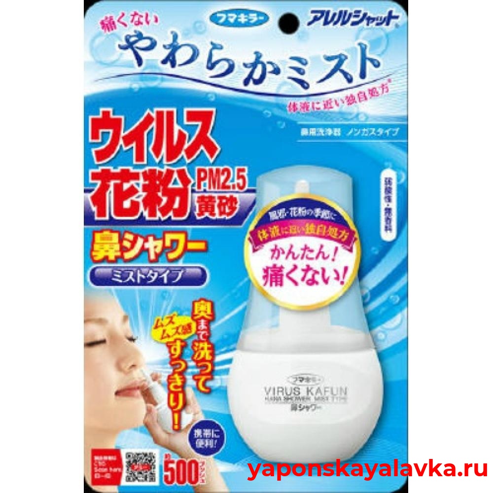 Легкая очистка носа от вирусов и аллергенов с помощью спрея Virus Kafun Hana Shower, который также способствует вымыванию микробов, пыльцы, частиц загрязнения размером PM2.5. Уровень PH подходит для слизистой. Не содержит ароматизаторов и стероидов. Подходит для детей, беременных и кормящих женщин.