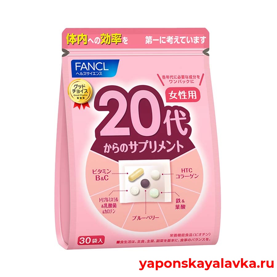 Компания Fancl создала этот комплекс специально для молодых девушек 20-30 лет. Добавка поможет Вам поддержать молодость и сохранить активный обмен веществ. Сочетание витаминов, минералов и микроэлементов благоприятно влияет на состояние кожи, волос и ногтей. Важным является содержание в комплексе железа, ответственного за образование гемоглобина в эритроцитах и профилактику анемии.