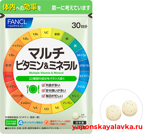 Для полноценного здоровья и хорошего самочувствия современному человеку необходимо получать количестве. Очень сложно отрегулировать свое питание так, чтобы каждый витамин получить в правот Fancl - отличное решение, чтобы не столкнуться с проблемами, связанные с авитаминозом. В его 11 видов витаминов для поддержания Вашего здоровья. Натуральный и качественный состав продуквитаминах и минералах, восстановит иммунитет, улучшат работу мозга и щитовидной железы, повысжизни.